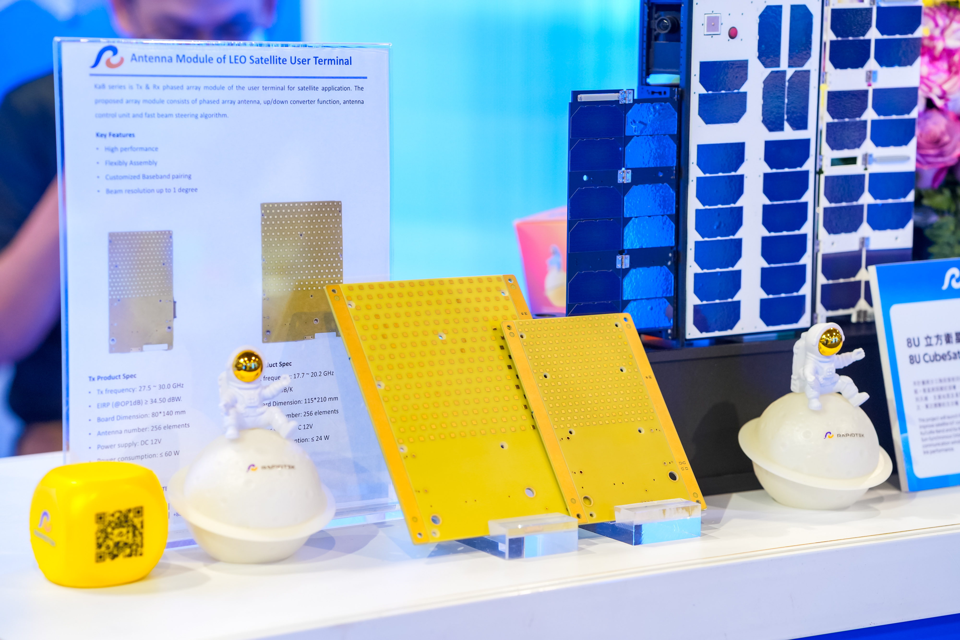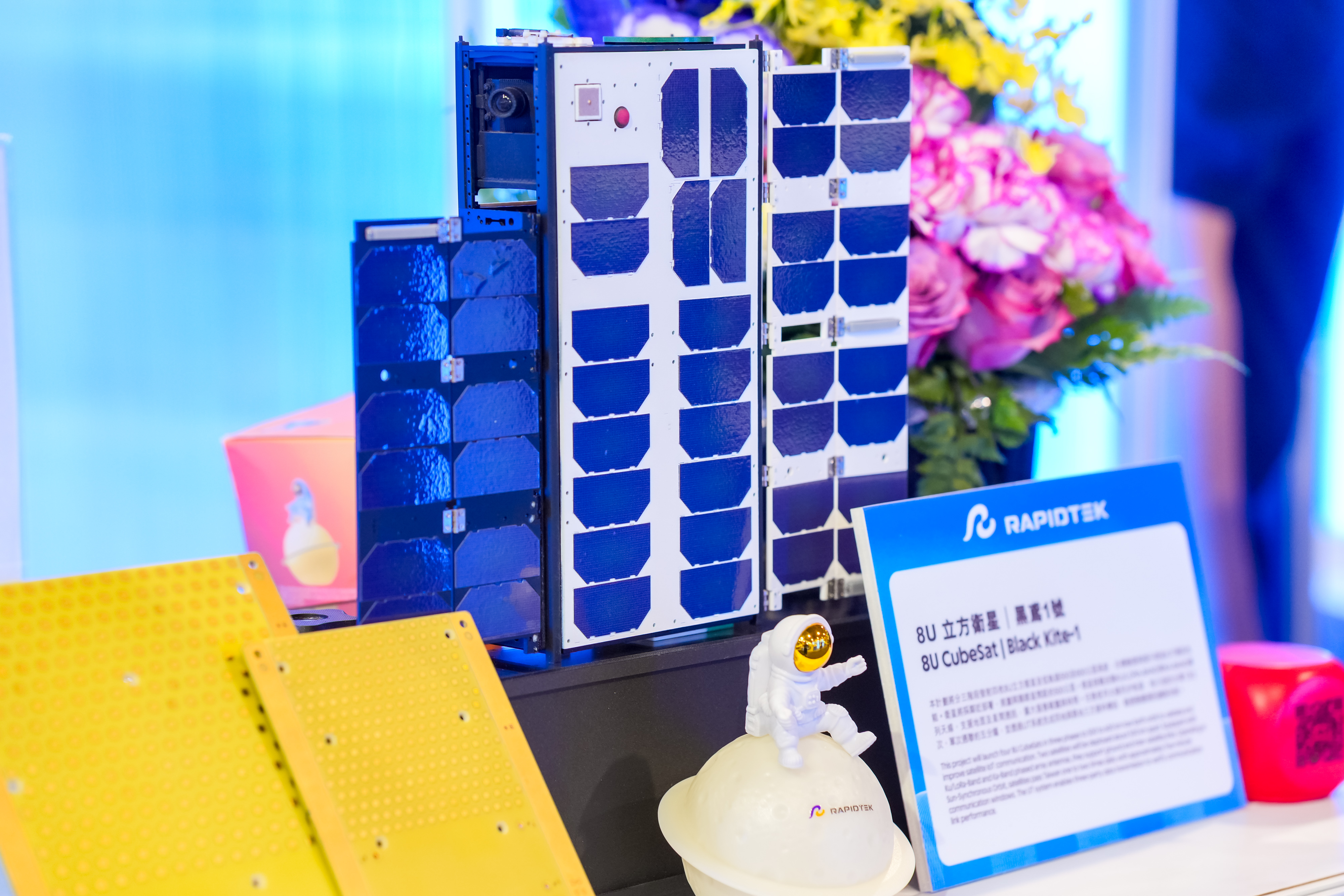 In addition to FoldSAT, Rapidtek also showcased the 8U IoT satellite “Black Kite-1”, developed in collaboration with Taiwan Space Agency (TASA). Following the successful 3U “Nightjar” mission, the 8U satellite is scheduled for launch aboard a SpaceX rocket later this year to validate IoT payload performance and space-grade processing. The combined display of FoldSAT and the 8U satellite underscores Rapidtek’s integrated Earth-to-Space strategy.